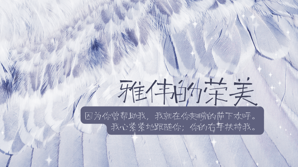 https://xiangbaishu.site/wp-content/uploads/2025/08/【诗歌】雅伟的荣美.mp3雅伟的荣美作词/作曲:张梁美琳 来欢呼称谢神雅伟 隐蔽在他翅膀下因他天天帮助我 我心紧靠着他藉他恩爱和信实 将他荣美显明他是满有智慧恩惠 让我们来敬拜他来尊崇赞美神雅伟 因他是圣洁荣美传扬他荣耀大能 和他配得的威严藉他大能和温柔 将他荣美显明他是全然公正荣美 让我们来敬拜他 †因为你曾帮助我,我就在你翅膀的荫下欢呼。我心紧紧地跟随你;你的右手扶持我。诗篇 63:7-8 有尊荣和威严在他面前;有能力与华美在他圣所。……当以圣洁的(的:或译为)妆饰敬拜耶和华;全地要在他面前战抖!诗篇 96:6,9 图片来自网络,如有侵权,请联系删除。 阅读更多 上一篇文章【诗歌】颂赞我主 下一篇文章【诗歌】活在主智慧中 你可能也喜欢 【诗歌】开垦荒地 2023年5月8日 【诗歌】安息在全能者的荫下 2025年7月4日 【诗歌】因着信(粤语原版) 2023年4月24日