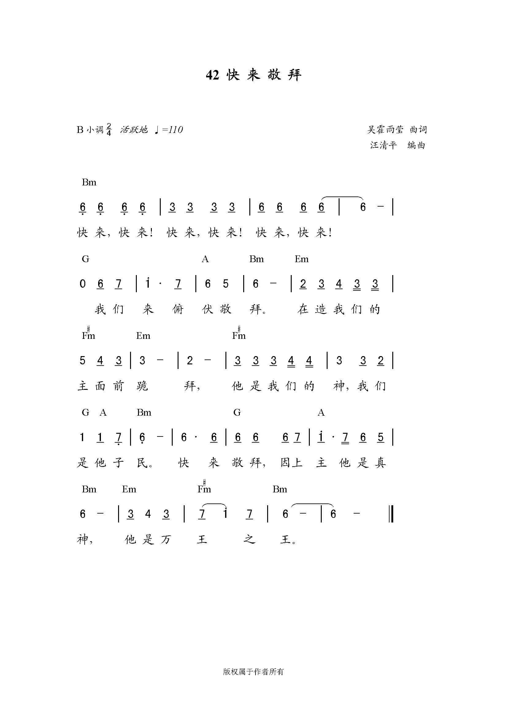 https://xiangbaishu.site/wp-content/uploads/2025/12/【诗歌】快来敬拜.mp3快来敬拜作词/作曲: 吴霍雨莹 快来 快来 快来 快来快来 快来我们来俯伏敬拜在造我们的主面前跪拜他是我们的神我们是他子民快来敬拜 因上主他是真神他是万王之王 † 图片来自网络,如有侵权,请联系删除。 阅读更多 上一篇文章【诗歌】做主精兵 下一篇文章【诗歌】我的力量和盾牌 你可能也喜欢 【诗歌】差遣我 2024年2月20日 【诗歌】雅伟的名何美 2023年4月25日 【诗歌】神机会的风 2024年4月16日