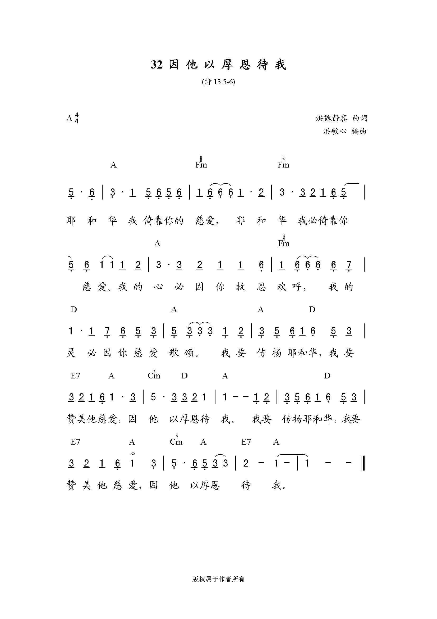 https://xiangbaishu.site/wp-content/uploads/2026/03/【诗歌】因他以厚恩待我.mp3因他以厚恩待我作词/作曲:洪魏静容 耶和华我依靠你的慈爱耶和华我必依靠你慈爱我的心必因你救恩欢呼我的灵必因你慈爱歌颂我要传扬耶和华我要赞美他慈爱因他以厚恩待我我要传扬耶和华我要赞美他慈爱因他以厚恩待我 †但我倚靠你的慈爱。我的心因你的救恩快乐。我要向雅伟歌唱,因他用厚恩待我。诗篇 13:5-6 图片来自网络,如有侵权,请联系删除。 阅读更多 上一篇文章【诗歌】基督被高举 下一篇文章【诗歌】传爱 你可能也喜欢 【诗歌】昼夜不住的呼求 2023年5月12日 【原创诗歌】向雅伟的祷告 2023年11月20日 【诗歌】我用信心抬起头 2023年5月10日