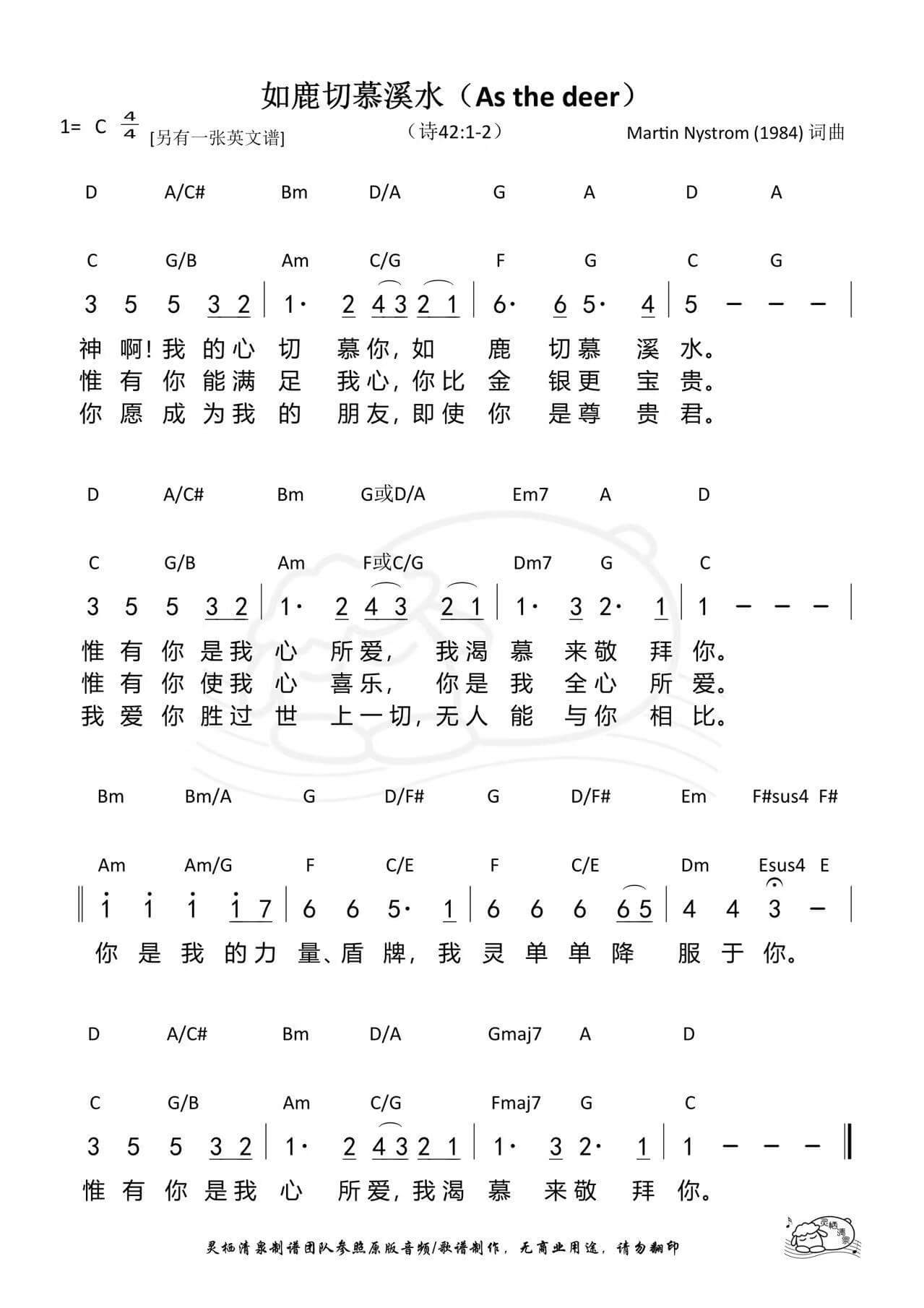 https://xiangbaishu.site/wp-content/uploads/2026/03/2.-如鹿切慕溪水.mp3如鹿切慕溪水作词/作曲:Martin Nystrom 神啊 我的心切慕你 如鹿切慕溪水惟有你是我心所爱 我渴慕来敬拜你惟有你能满足我心 你比金银更宝贵惟有你使我心喜乐 你是我全心所爱你愿成为我的朋友 即使你是尊贵君我爱你胜过世上一切 无人能与你相比副歌:你是我的力量盾牌我灵单单降服于你惟有你是我心所爱渴慕来敬拜你 †神阿,我的心切慕你,如鹿切慕溪水。我的心渴想神,就是永生神。我几时得朝见神呢?诗篇42:1-2 图片来自网络,如有侵权,请联系删除。 阅读更多 上一篇文章【诗歌】神的良善 下一篇文章【诗歌】求主助我数算 你可能也喜欢 【诗歌】谁能像你 2023年8月30日 【原创诗歌】更美的盼望 2023年11月15日 【诗歌】诗篇130篇1-4节 2023年11月20日