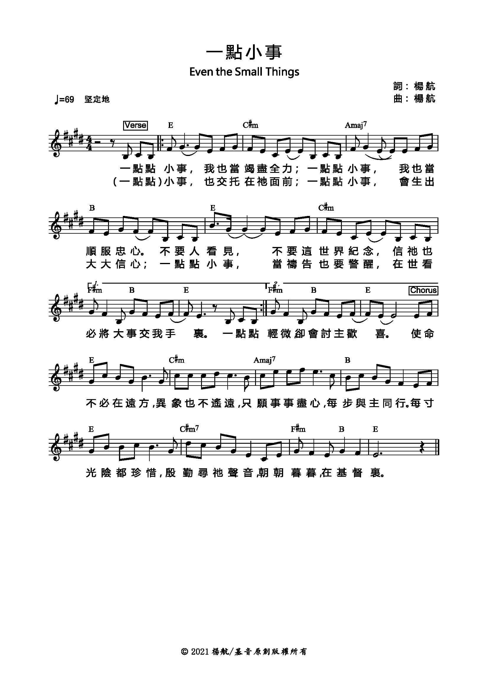 https://xiangbaishu.site/wp-content/uploads/2026/03/10.-一点小事.mp3一点小事作词/作曲:杨航 一点点小事 我也当竭尽全力一点点小事 我也当顺服忠心不要人看见 不要这世界纪念信他也必将大事交我手里一点点小事 也交托在他面前一点点小事 会生出大大信心一点点小事 当祷告也要警醒世人看轻微 却会讨主欢喜使命不必在远方异象也不遥远只愿事事尽心每步与主同行每寸光阴都珍惜殷勤寻他声音朝朝暮暮在基督里 † 图片来自网络,如有侵权,请联系删除。 阅读更多 上一篇文章【诗歌】相信不是因为看见 下一篇文章【诗歌】更新改变 你可能也喜欢 【诗歌】All for you 全为你 2023年11月20日 【诗歌】我们一起长成 2023年11月20日 【诗歌】更新改变 2026年3月31日